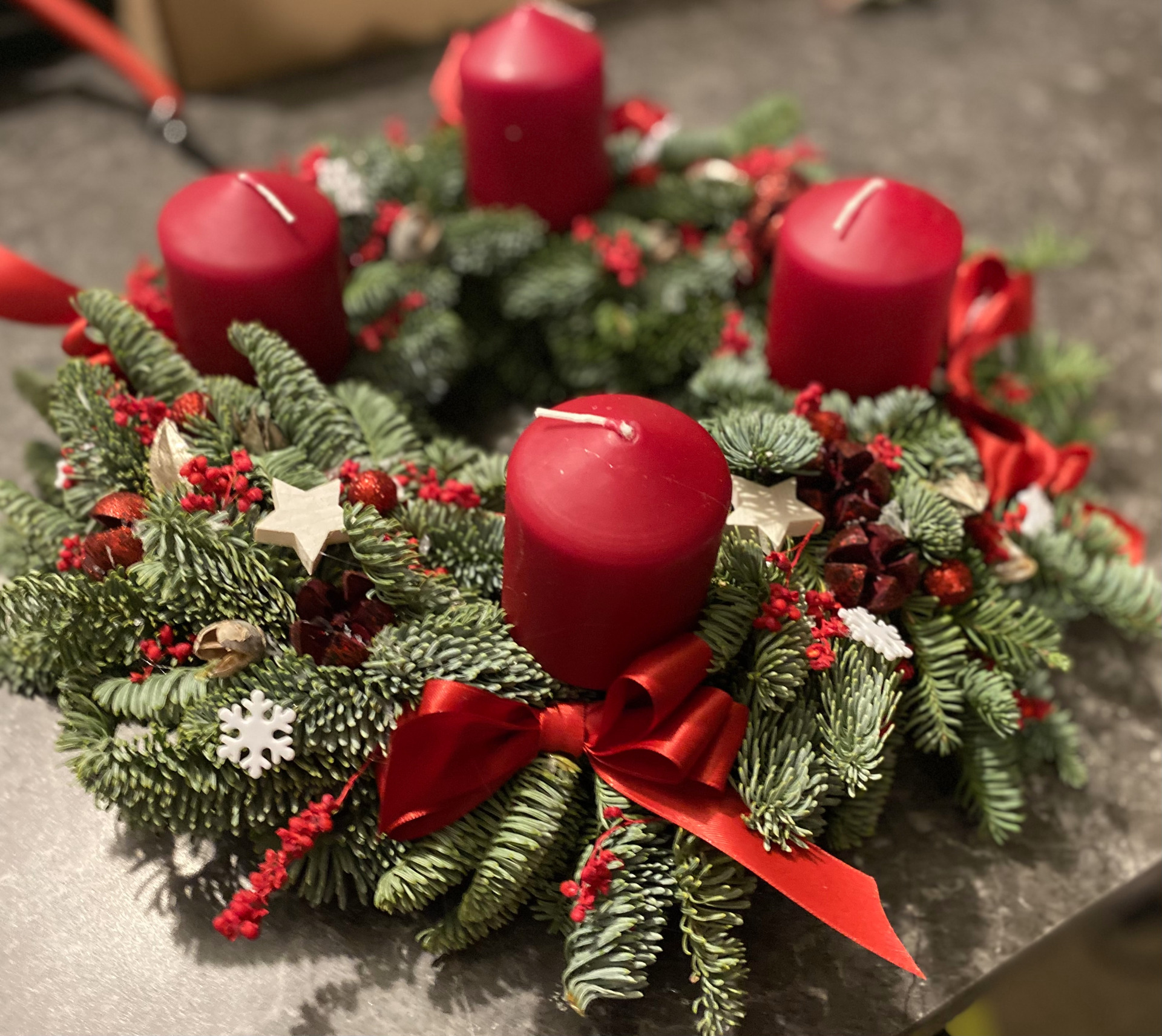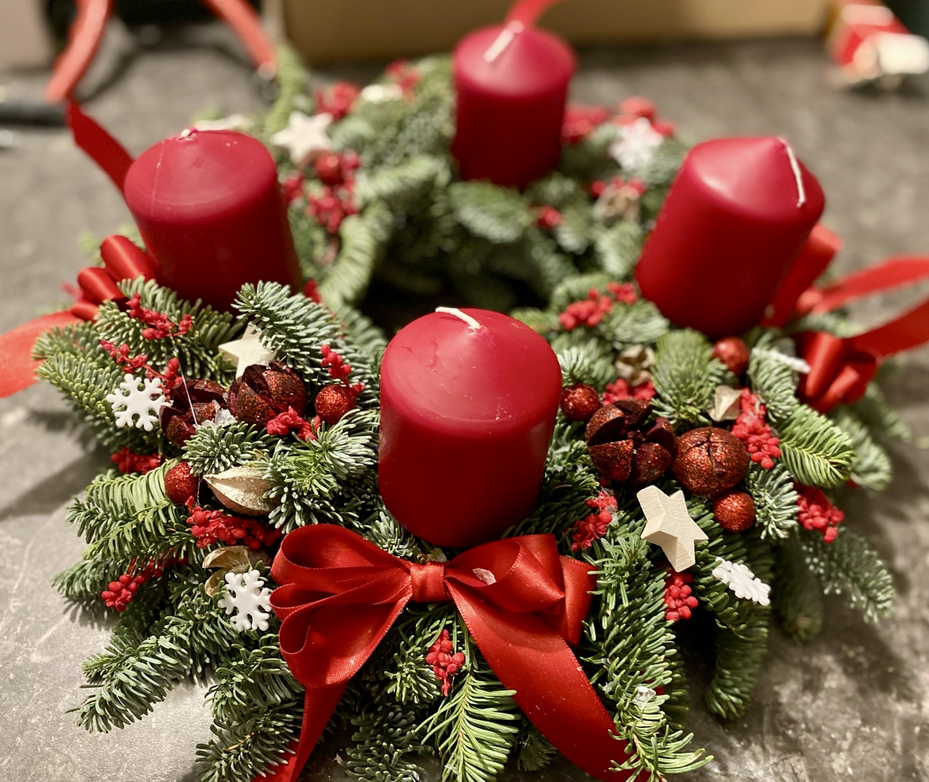 Vázaný věnec v červené barvě je vyrobený z kvalitní neopadavé jedle Nobilis. Průměr věnce je cca 38-40 cm.