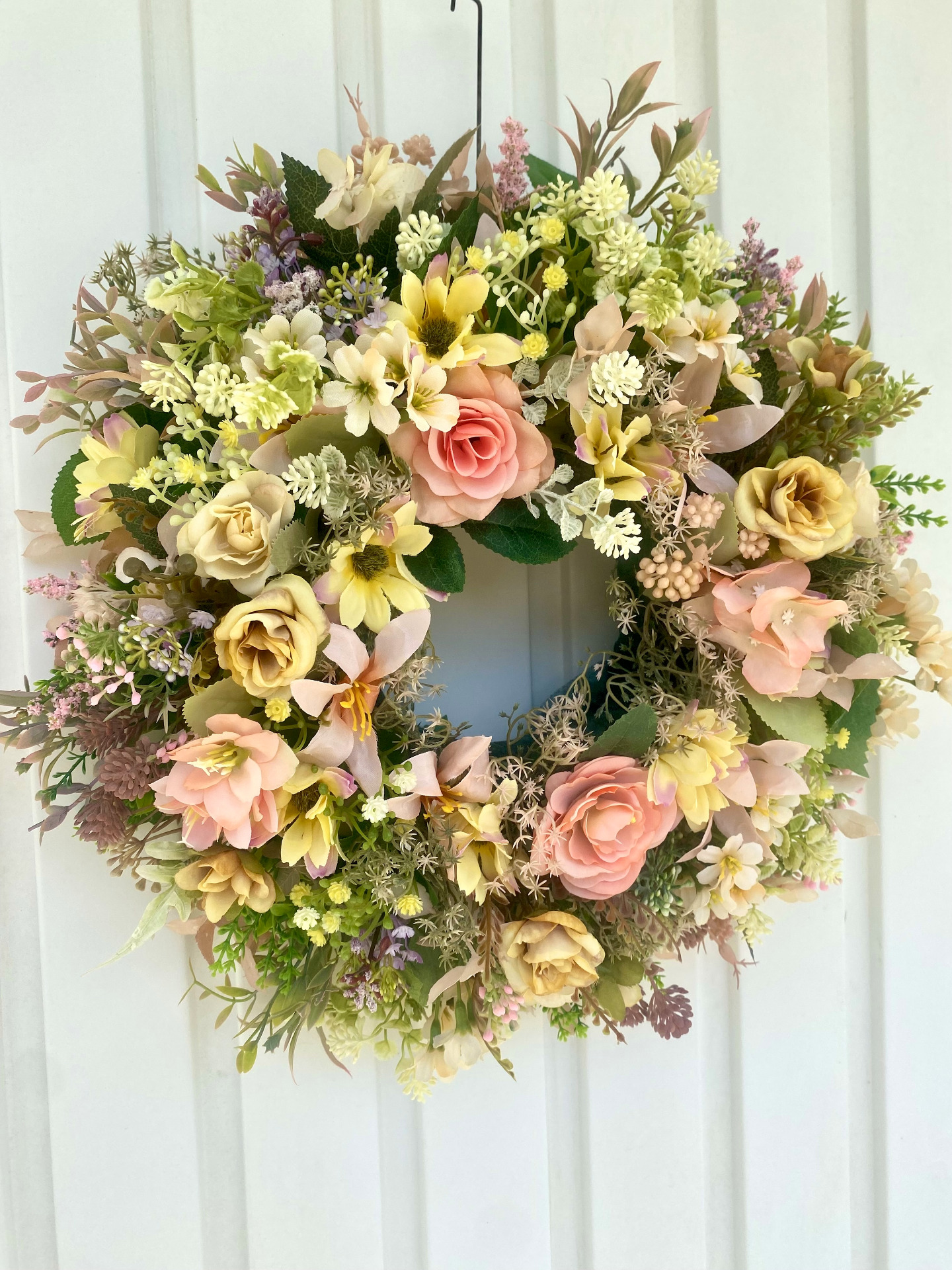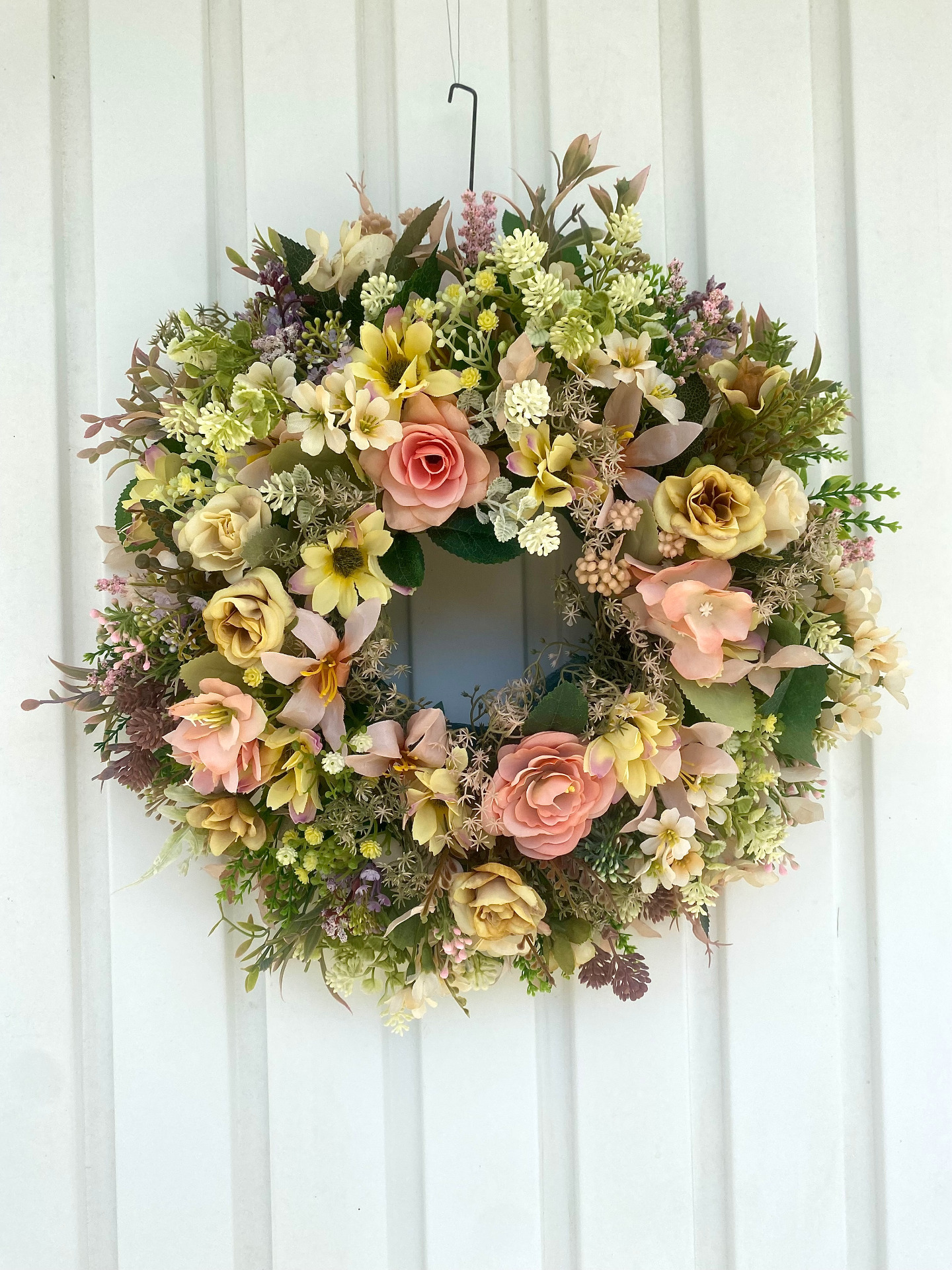 Krásný zbrusu nový věnec velmi bohatě zdobený v teplých odsdtínech žlutobroskvové má průměr cca 37 cm.